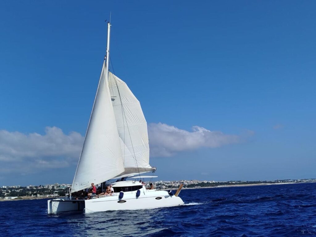 An unforgettable catamaran sailing experience! Cruise along the beautiful east coast of Rhodes aboard our spacious sailing catamaran, combining relaxation and sailing in equal measure.