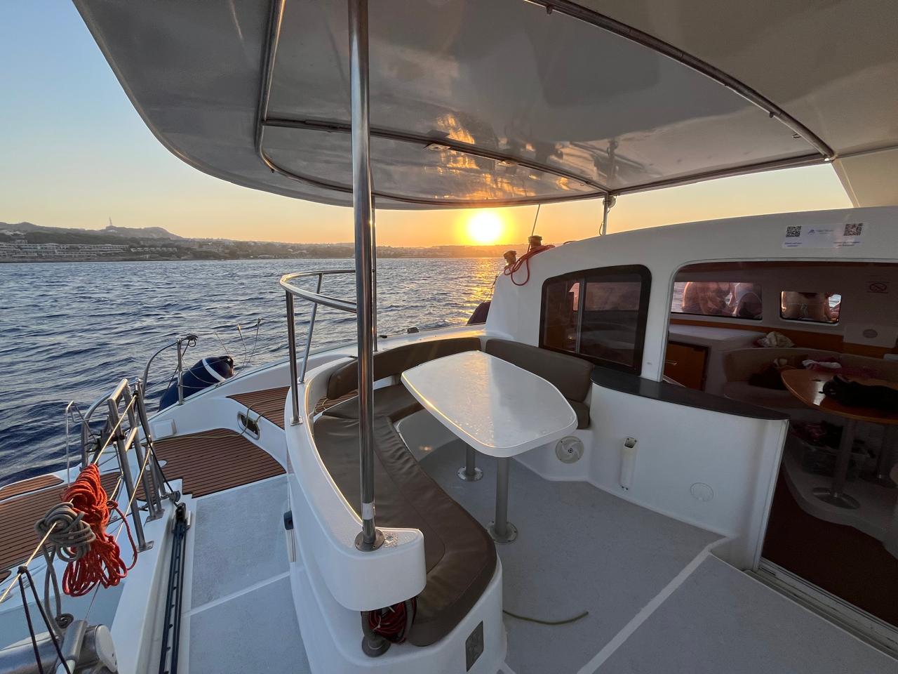 The Fountaine Pajot Lavezzi 40 is 12 metres long and almost 7 metres wide offering ample space at the front on the net and cushions or in the shaded seating area at the back.  Wind permitting, we open the sails to give you a true sailing experience.